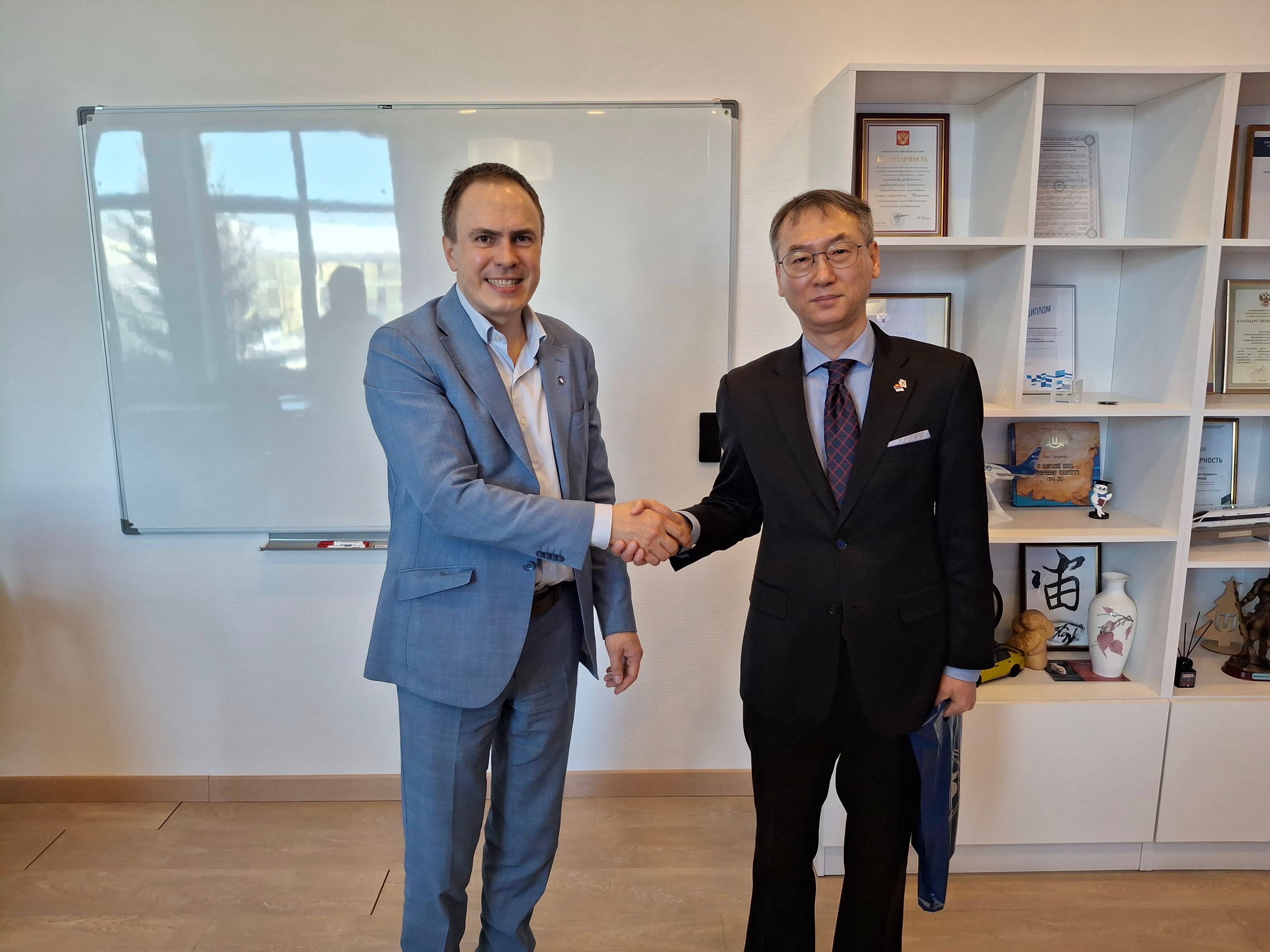 3.3(화) 김철상 총영사 대리는 스테판 비코프 이르쿠츠크 국립연구기술대 국제활동부총장과 면담을 가졌습니다. 김 총영사 대리는 동 대학의 중점 활동 방향 및 한국 대학들과의 협력 현황에 대해 청취하고, 총영사관-대학간 협력 방안에 대해 논의했습니다.